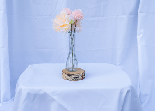 Burgendy and White Mix Rose Centerpiece with large wood slices